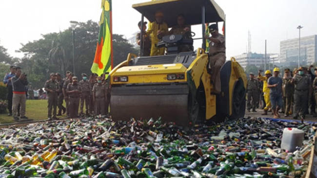 “Pemusnahan dilakukan terbuka agar semua melihat dan menjadi peringatan agar tidak ada lagi pelanggaran [peredaran miras] di DKI Jakarta,” ujarnya.